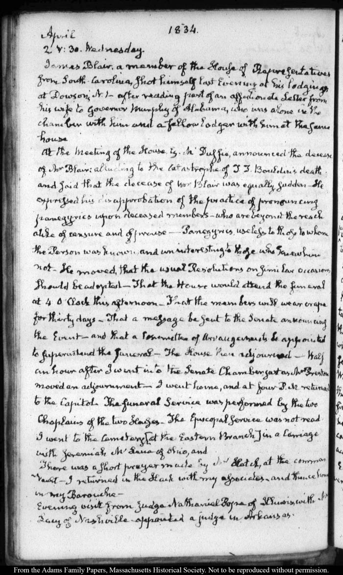 View full, authoritative transcriptions with page images of the diaries at John Quincy Adams Digital Diary part of the Primary Source Cooperative at the MHS.