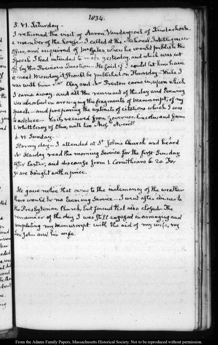 View full, authoritative transcriptions with page images of the diaries at John Quincy Adams Digital Diary part of the Primary Source Cooperative at the MHS.