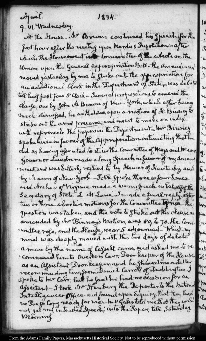 View full, authoritative transcriptions with page images of the diaries at John Quincy Adams Digital Diary part of the Primary Source Cooperative at the MHS.