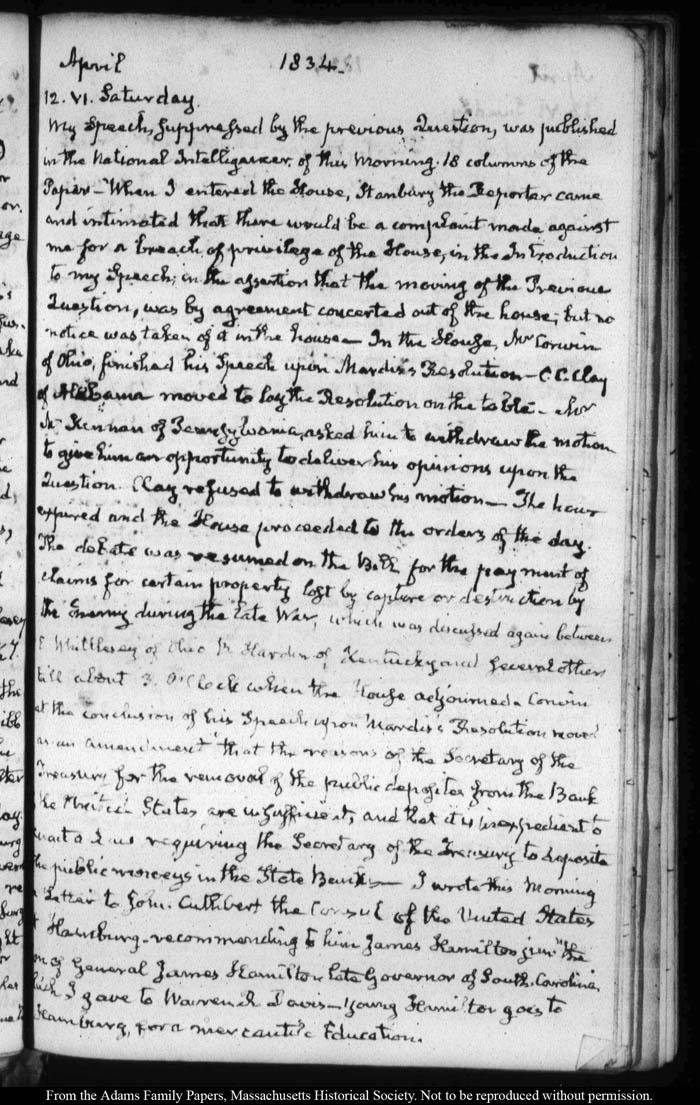 View full, authoritative transcriptions with page images of the diaries at John Quincy Adams Digital Diary part of the Primary Source Cooperative at the MHS.