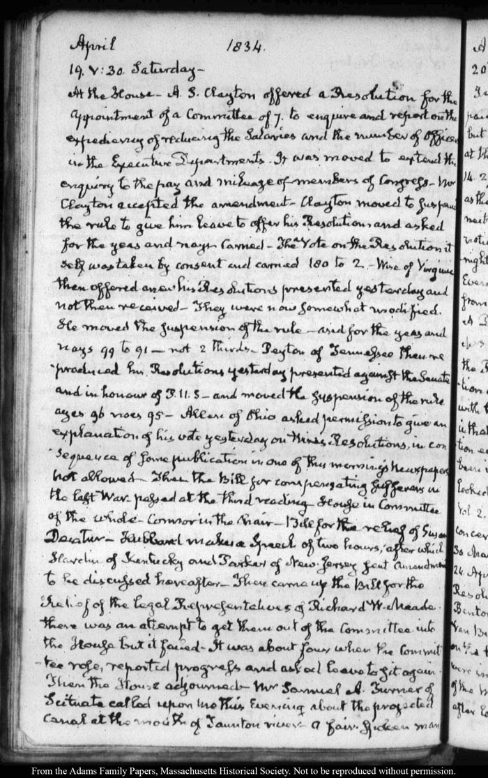 View full, authoritative transcriptions with page images of the diaries at John Quincy Adams Digital Diary part of the Primary Source Cooperative at the MHS.