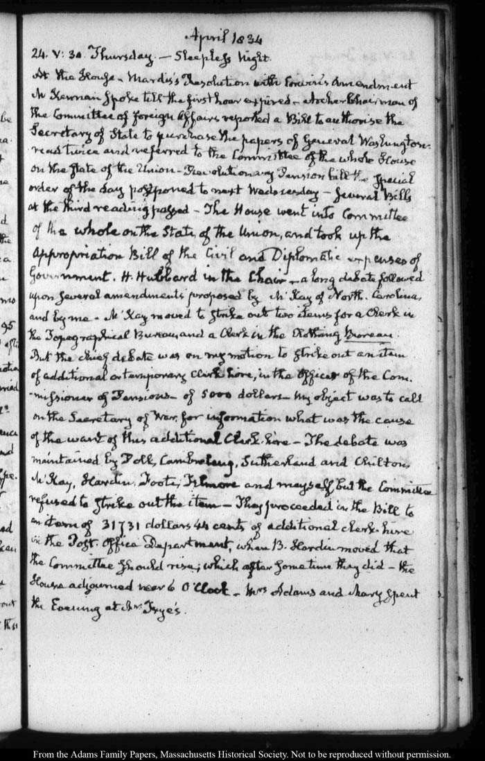 View full, authoritative transcriptions with page images of the diaries at John Quincy Adams Digital Diary part of the Primary Source Cooperative at the MHS.