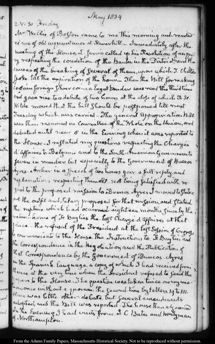 View full, authoritative transcriptions with page images of the diaries at John Quincy Adams Digital Diary part of the Primary Source Cooperative at the MHS.
