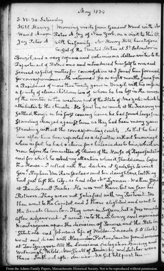 View full, authoritative transcriptions with page images of the diaries at John Quincy Adams Digital Diary part of the Primary Source Cooperative at the MHS.