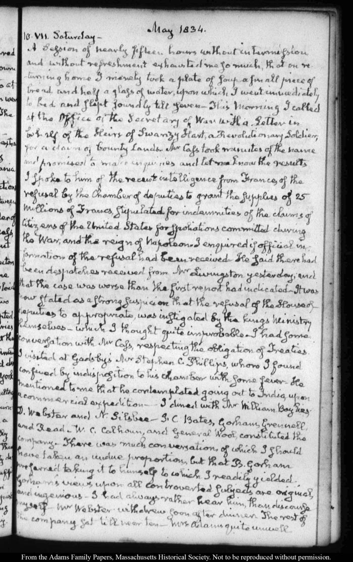 View full, authoritative transcriptions with page images of the diaries at John Quincy Adams Digital Diary part of the Primary Source Cooperative at the MHS.