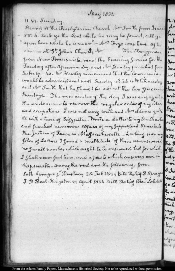 View full, authoritative transcriptions with page images of the diaries at John Quincy Adams Digital Diary part of the Primary Source Cooperative at the MHS.