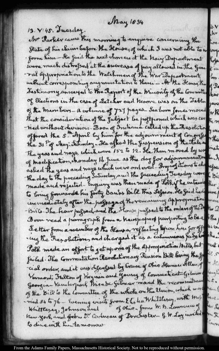 View full, authoritative transcriptions with page images of the diaries at John Quincy Adams Digital Diary part of the Primary Source Cooperative at the MHS.