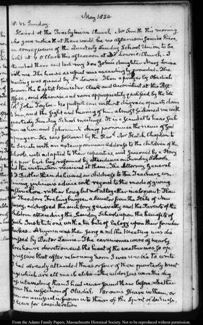 View full, authoritative transcriptions with page images of the diaries at John Quincy Adams Digital Diary part of the Primary Source Cooperative at the MHS.