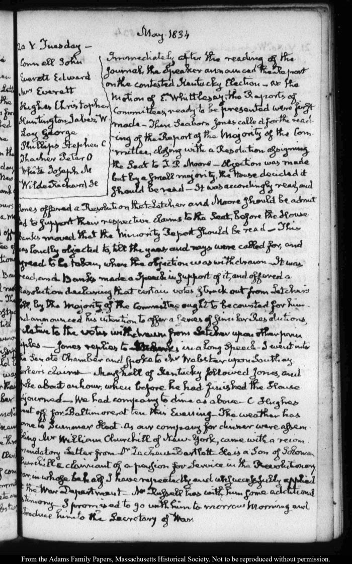 View full, authoritative transcriptions with page images of the diaries at John Quincy Adams Digital Diary part of the Primary Source Cooperative at the MHS.