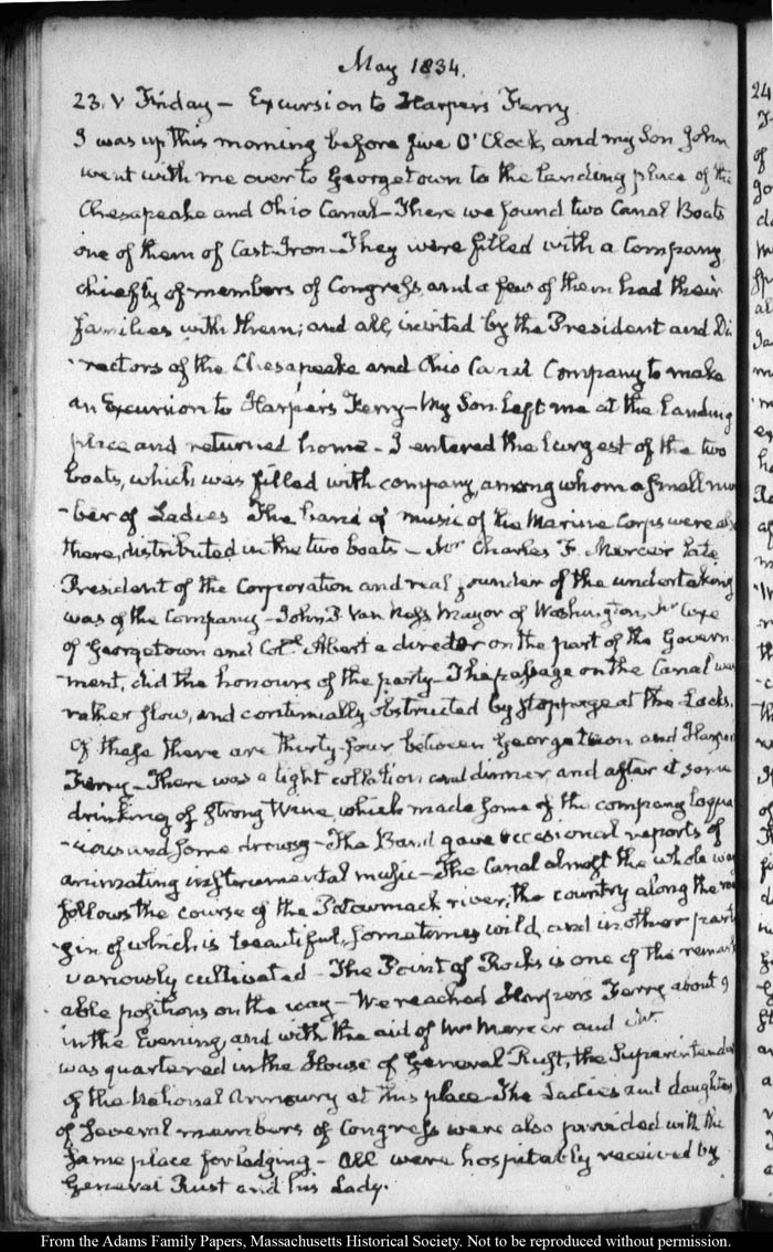 View full, authoritative transcriptions with page images of the diaries at John Quincy Adams Digital Diary part of the Primary Source Cooperative at the MHS.