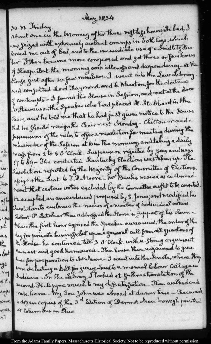 View full, authoritative transcriptions with page images of the diaries at John Quincy Adams Digital Diary part of the Primary Source Cooperative at the MHS.