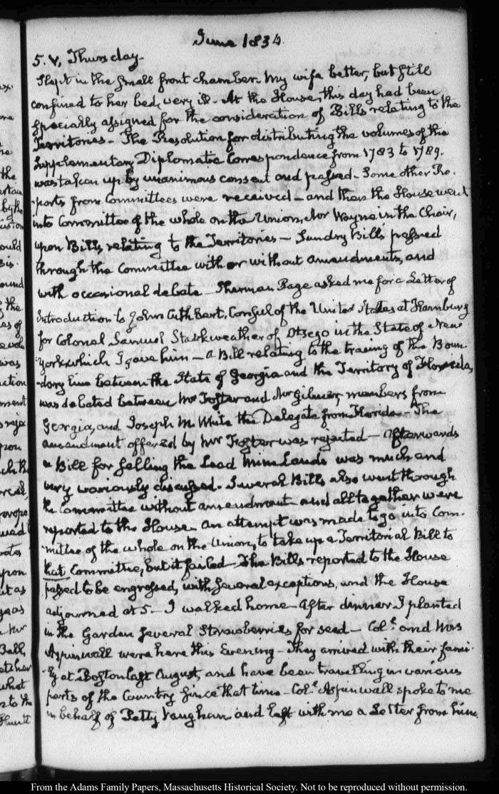 View full, authoritative transcriptions with page images of the diaries at John Quincy Adams Digital Diary part of the Primary Source Cooperative at the MHS.