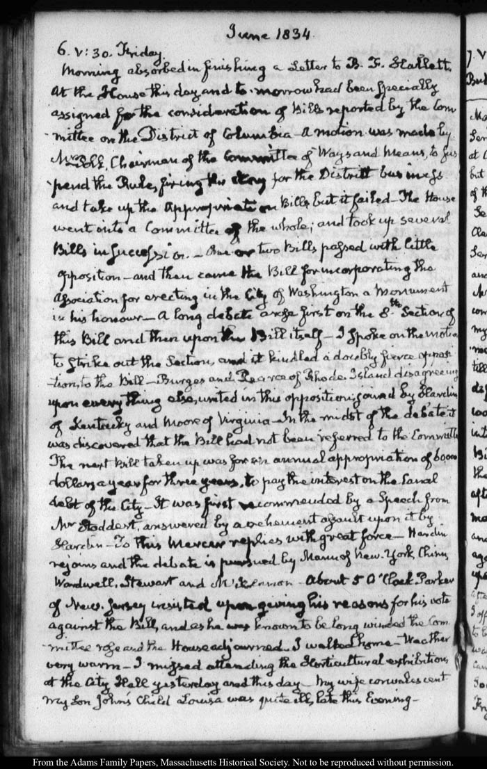 View full, authoritative transcriptions with page images of the diaries at John Quincy Adams Digital Diary part of the Primary Source Cooperative at the MHS.