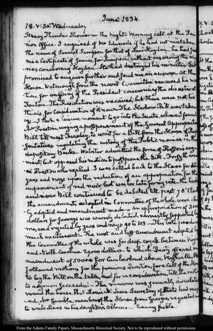 View full, authoritative transcriptions with page images of the diaries at John Quincy Adams Digital Diary part of the Primary Source Cooperative at the MHS.