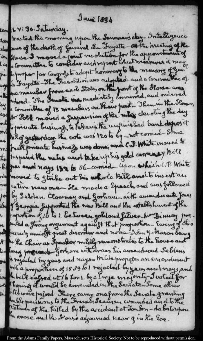 View full, authoritative transcriptions with page images of the diaries at John Quincy Adams Digital Diary part of the Primary Source Cooperative at the MHS.