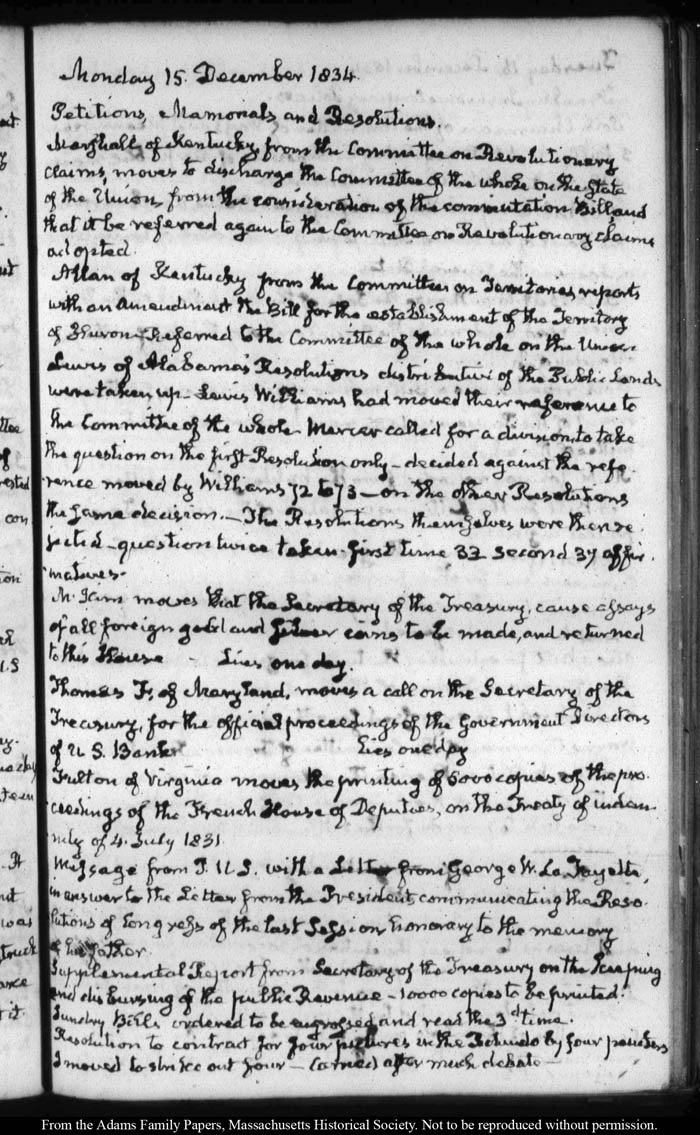 View full, authoritative transcriptions with page images of the diaries at John Quincy Adams Digital Diary part of the Primary Source Cooperative at the MHS.