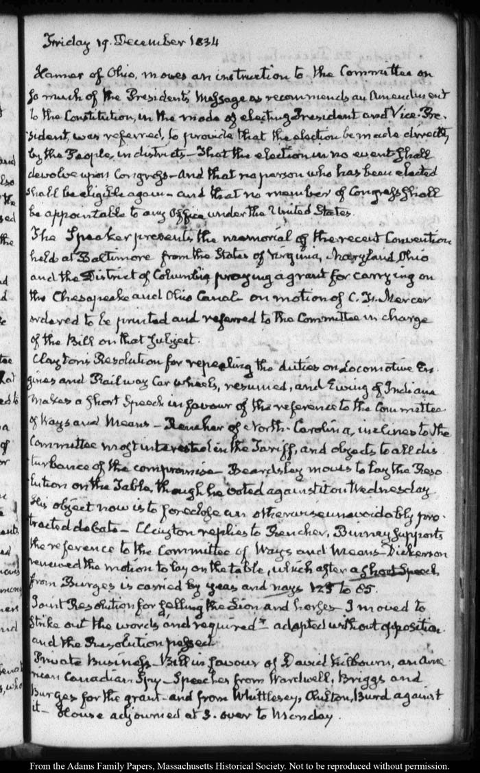 View full, authoritative transcriptions with page images of the diaries at John Quincy Adams Digital Diary part of the Primary Source Cooperative at the MHS.