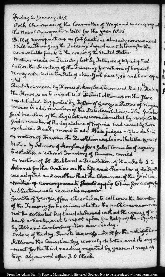 View full, authoritative transcriptions with page images of the diaries at John Quincy Adams Digital Diary part of the Primary Source Cooperative at the MHS.