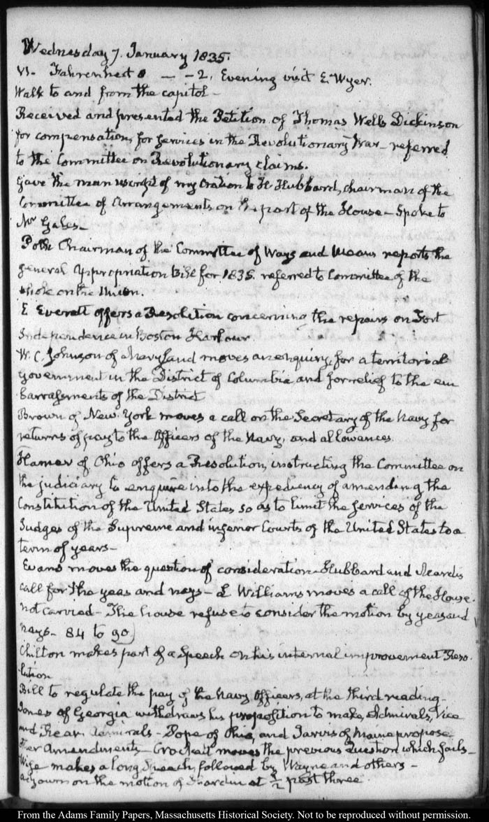 View full, authoritative transcriptions with page images of the diaries at John Quincy Adams Digital Diary part of the Primary Source Cooperative at the MHS.