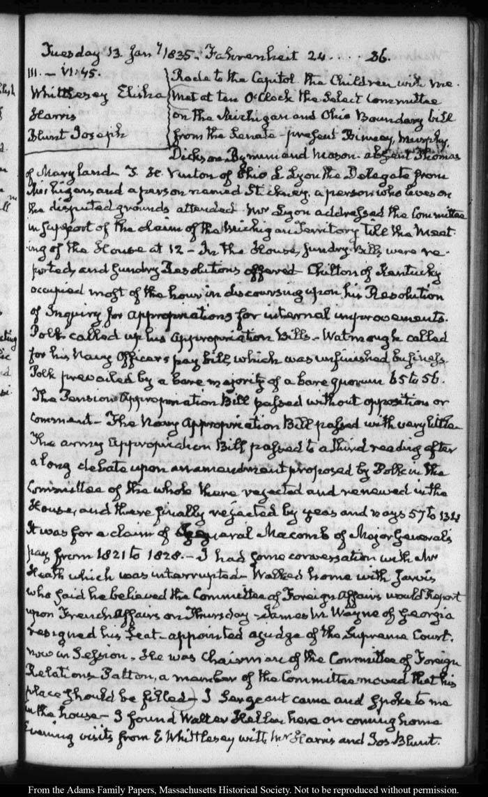 View full, authoritative transcriptions with page images of the diaries at John Quincy Adams Digital Diary part of the Primary Source Cooperative at the MHS.