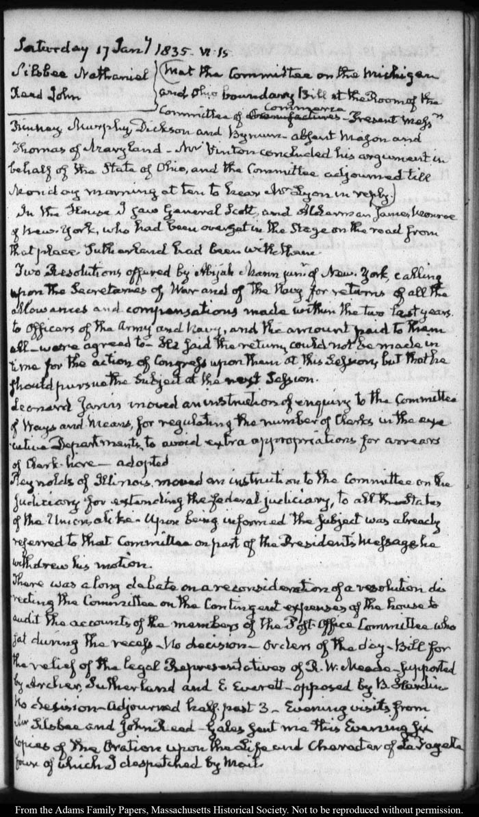 View full, authoritative transcriptions with page images of the diaries at John Quincy Adams Digital Diary part of the Primary Source Cooperative at the MHS.