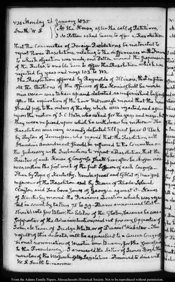 View full, authoritative transcriptions with page images of the diaries at John Quincy Adams Digital Diary part of the Primary Source Cooperative at the MHS.