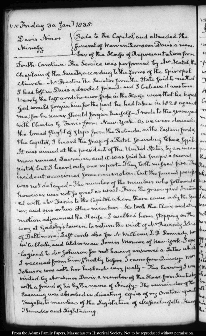 View full, authoritative transcriptions with page images of the diaries at John Quincy Adams Digital Diary part of the Primary Source Cooperative at the MHS.