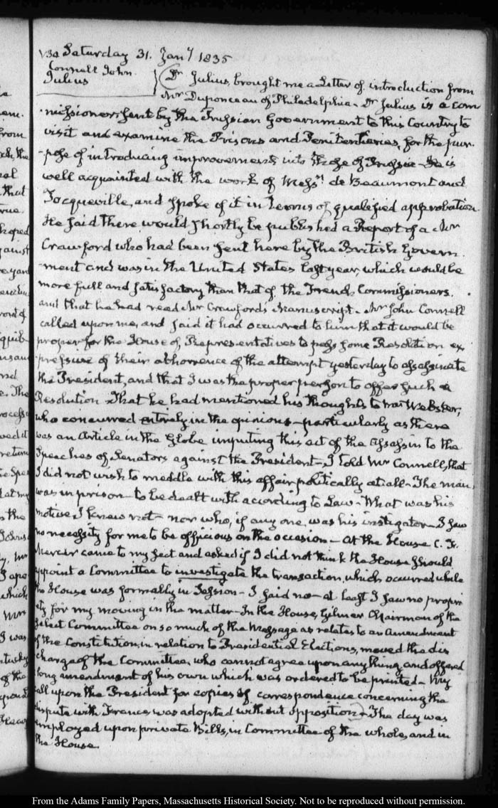 View full, authoritative transcriptions with page images of the diaries at John Quincy Adams Digital Diary part of the Primary Source Cooperative at the MHS.