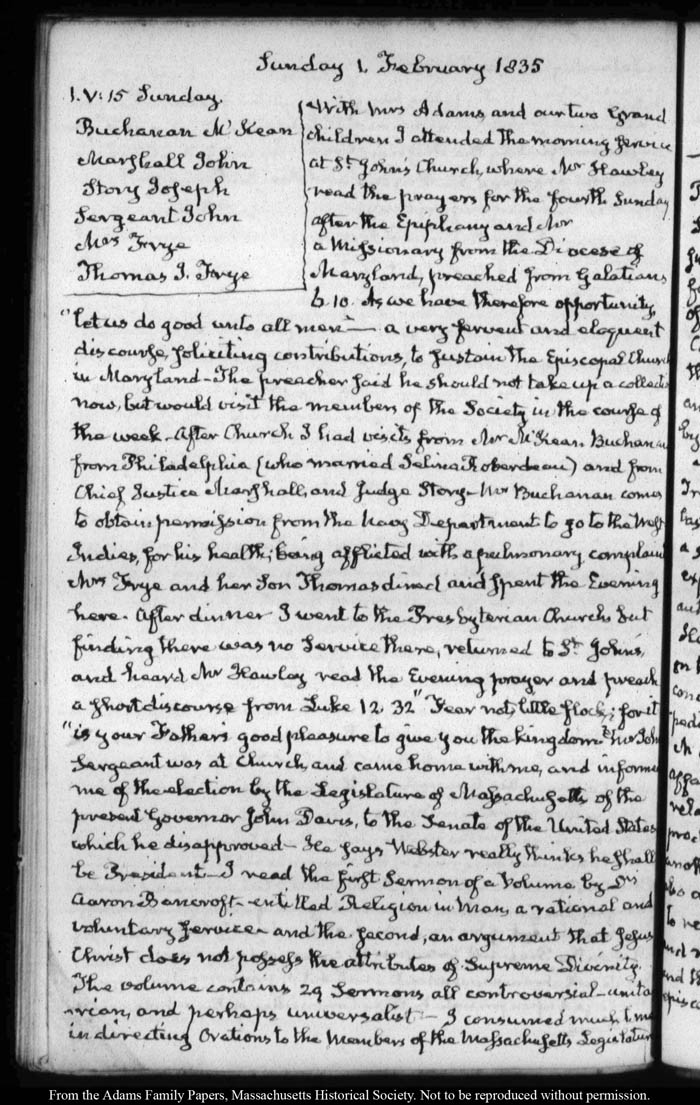 View full, authoritative transcriptions with page images of the diaries at John Quincy Adams Digital Diary part of the Primary Source Cooperative at the MHS.