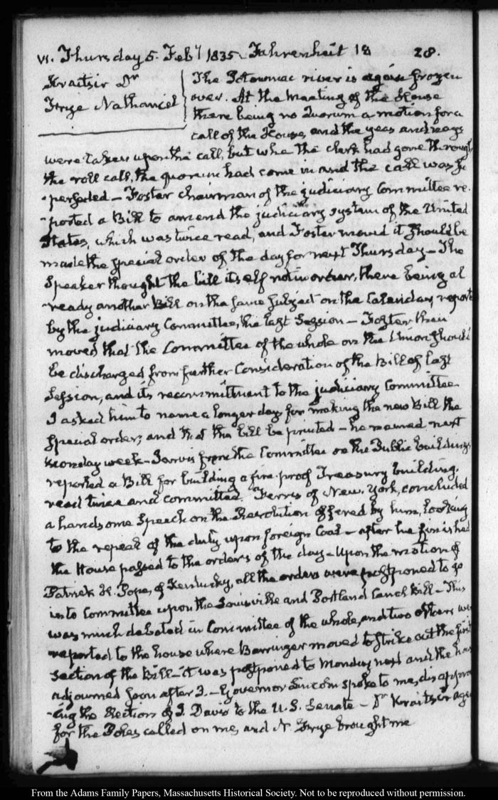 View full, authoritative transcriptions with page images of the diaries at John Quincy Adams Digital Diary part of the Primary Source Cooperative at the MHS.