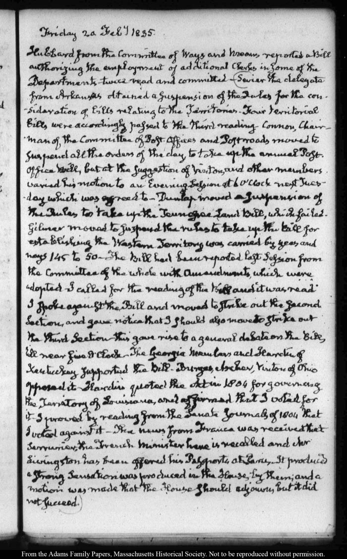 View full, authoritative transcriptions with page images of the diaries at John Quincy Adams Digital Diary part of the Primary Source Cooperative at the MHS.