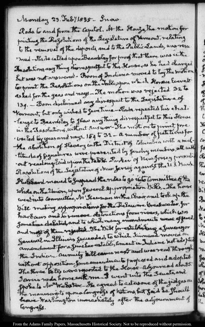 View full, authoritative transcriptions with page images of the diaries at John Quincy Adams Digital Diary part of the Primary Source Cooperative at the MHS.