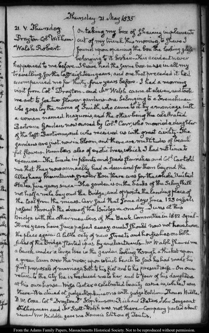 View full, authoritative transcriptions with page images of the diaries at John Quincy Adams Digital Diary part of the Primary Source Cooperative at the MHS.