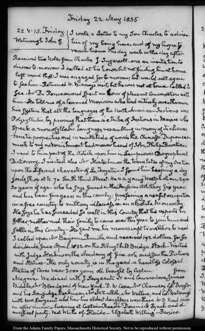 View full, authoritative transcriptions with page images of the diaries at John Quincy Adams Digital Diary part of the Primary Source Cooperative at the MHS.