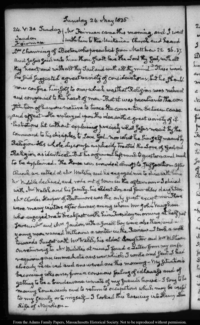 View full, authoritative transcriptions with page images of the diaries at John Quincy Adams Digital Diary part of the Primary Source Cooperative at the MHS.