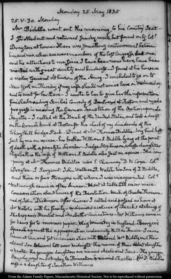 View full, authoritative transcriptions with page images of the diaries at John Quincy Adams Digital Diary part of the Primary Source Cooperative at the MHS.
