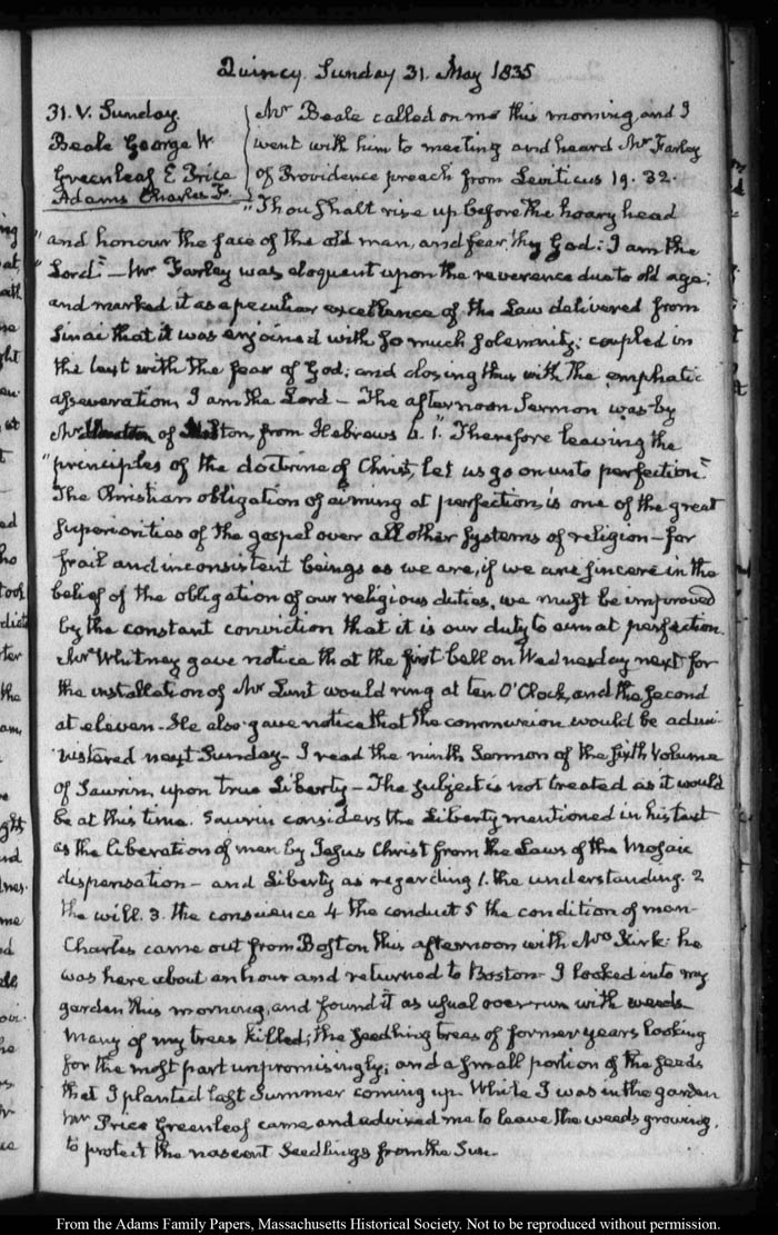 View full, authoritative transcriptions with page images of the diaries at John Quincy Adams Digital Diary part of the Primary Source Cooperative at the MHS.