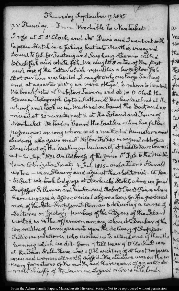 View full, authoritative transcriptions with page images of the diaries at John Quincy Adams Digital Diary part of the Primary Source Cooperative at the MHS.