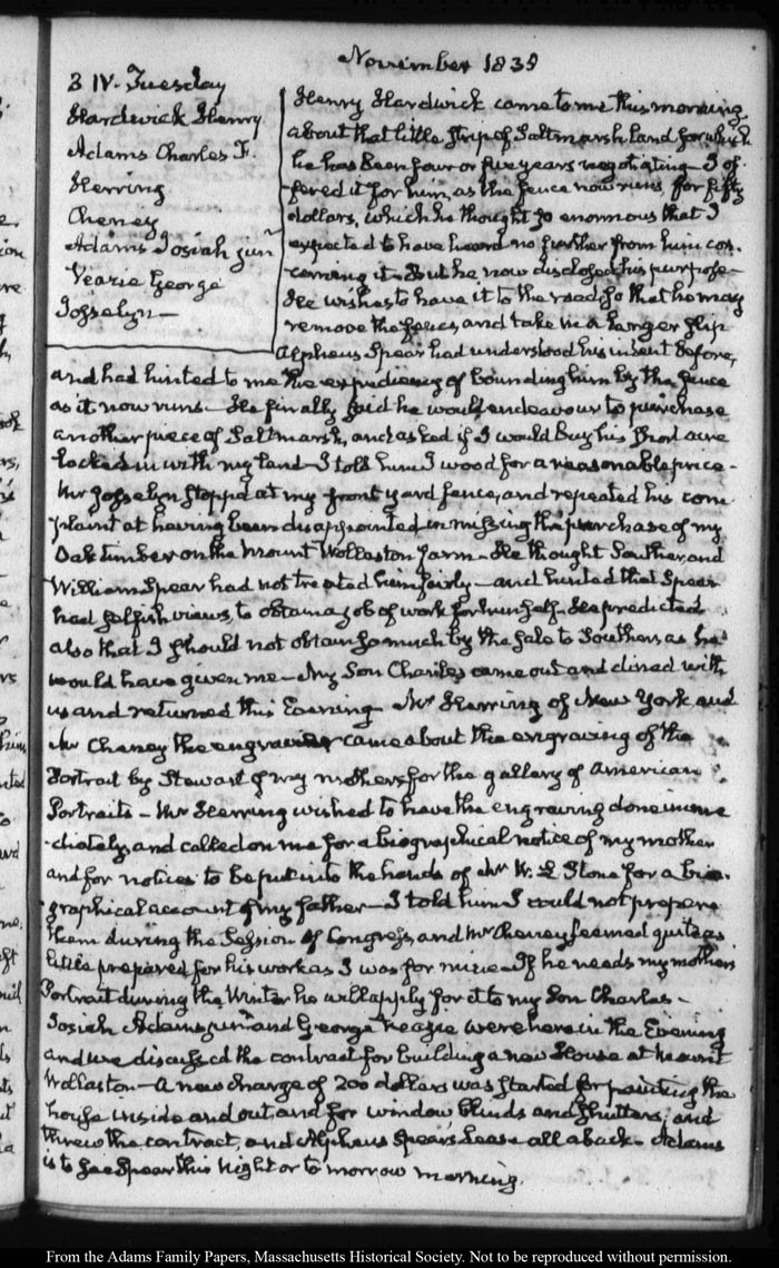 View full, authoritative transcriptions with page images of the diaries at John Quincy Adams Digital Diary part of the Primary Source Cooperative at the MHS.