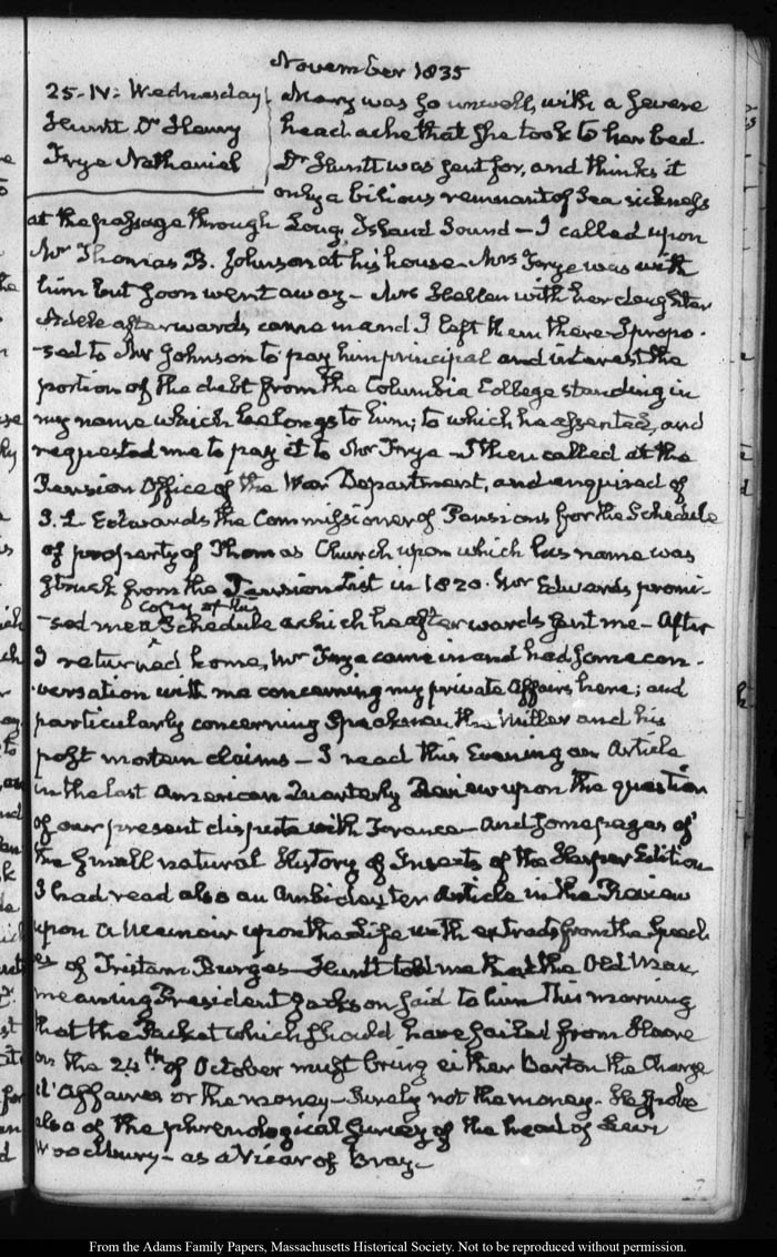 View full, authoritative transcriptions with page images of the diaries at John Quincy Adams Digital Diary part of the Primary Source Cooperative at the MHS.