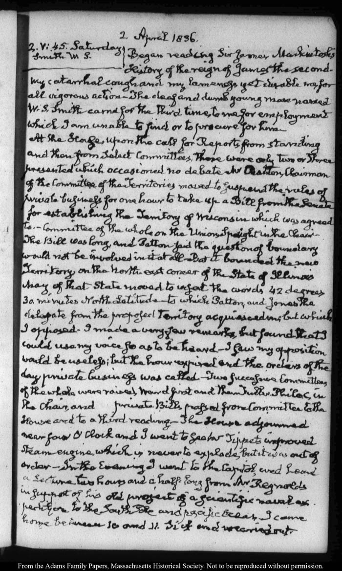 View full, authoritative transcriptions with page images of the diaries at John Quincy Adams Digital Diary part of the Primary Source Cooperative at the MHS.