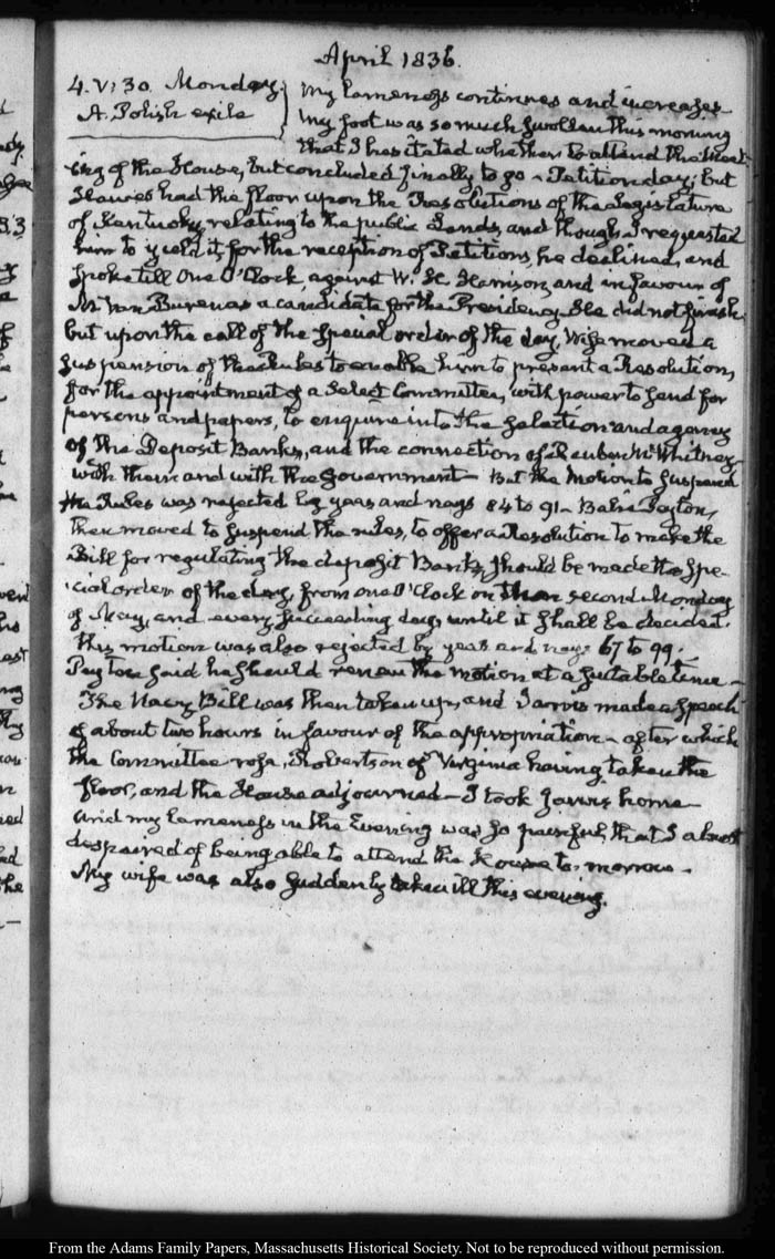 View full, authoritative transcriptions with page images of the diaries at John Quincy Adams Digital Diary part of the Primary Source Cooperative at the MHS.