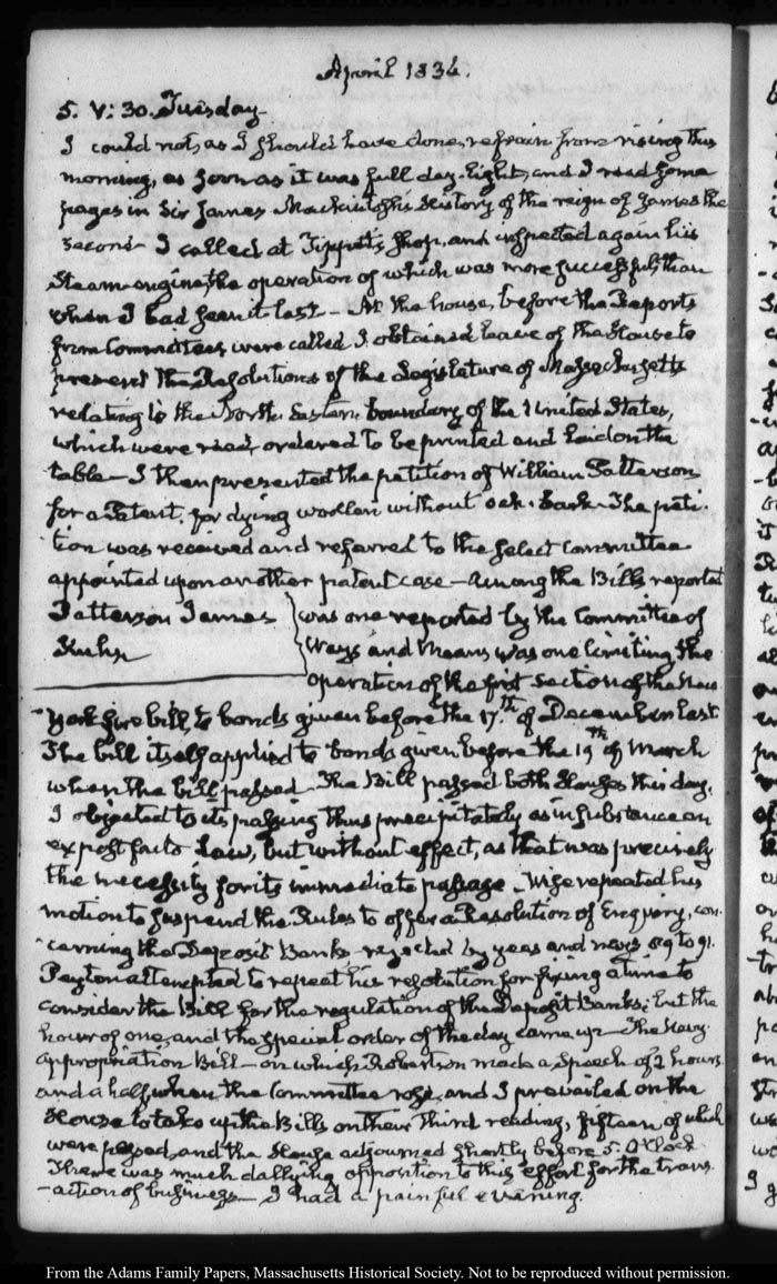 View full, authoritative transcriptions with page images of the diaries at John Quincy Adams Digital Diary part of the Primary Source Cooperative at the MHS.