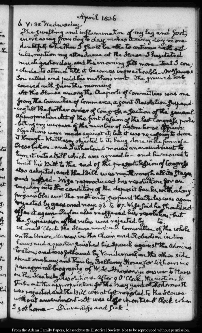 View full, authoritative transcriptions with page images of the diaries at John Quincy Adams Digital Diary part of the Primary Source Cooperative at the MHS.