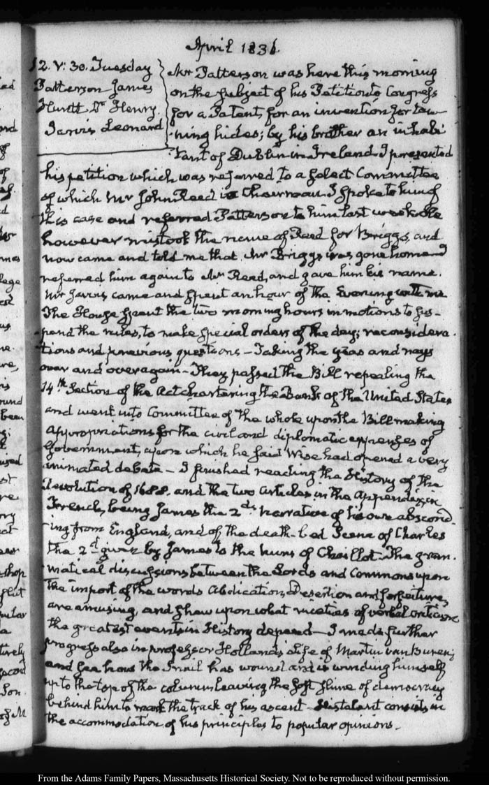 View full, authoritative transcriptions with page images of the diaries at John Quincy Adams Digital Diary part of the Primary Source Cooperative at the MHS.
