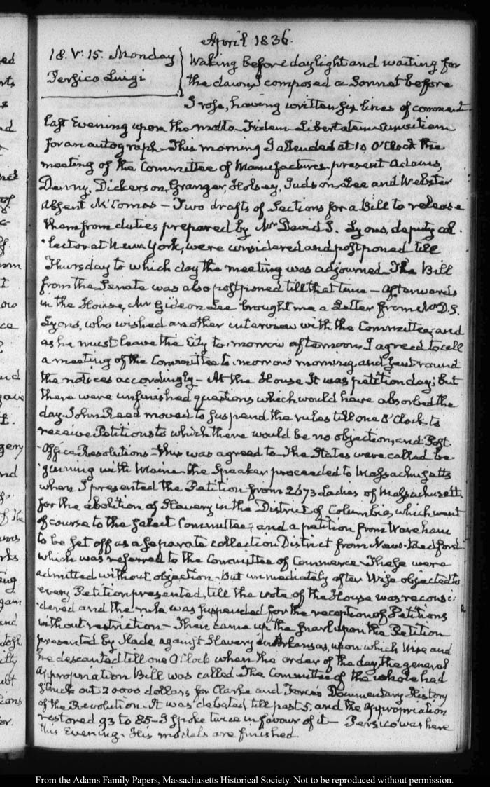 View full, authoritative transcriptions with page images of the diaries at John Quincy Adams Digital Diary part of the Primary Source Cooperative at the MHS.