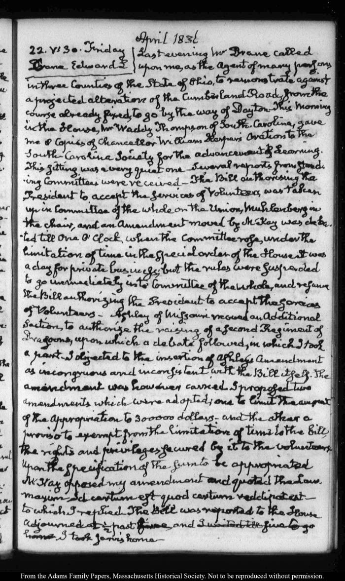 View full, authoritative transcriptions with page images of the diaries at John Quincy Adams Digital Diary part of the Primary Source Cooperative at the MHS.