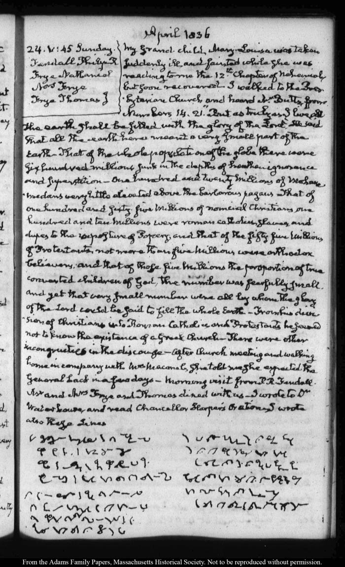View full, authoritative transcriptions with page images of the diaries at John Quincy Adams Digital Diary part of the Primary Source Cooperative at the MHS.