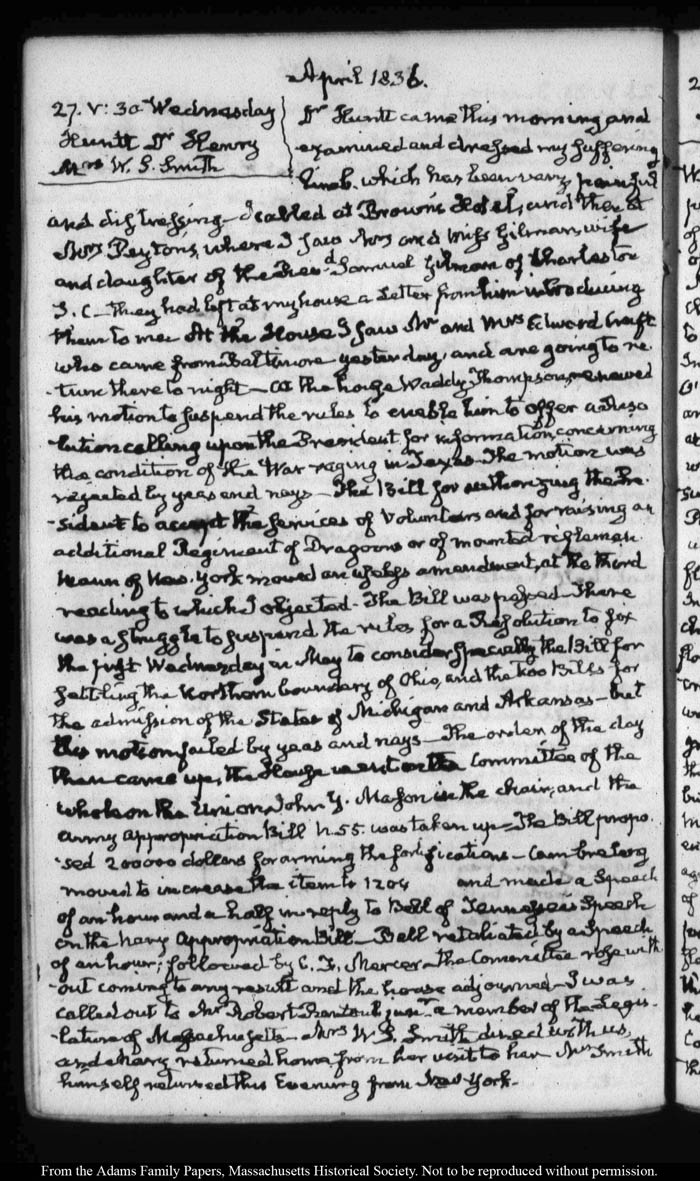 View full, authoritative transcriptions with page images of the diaries at John Quincy Adams Digital Diary part of the Primary Source Cooperative at the MHS.