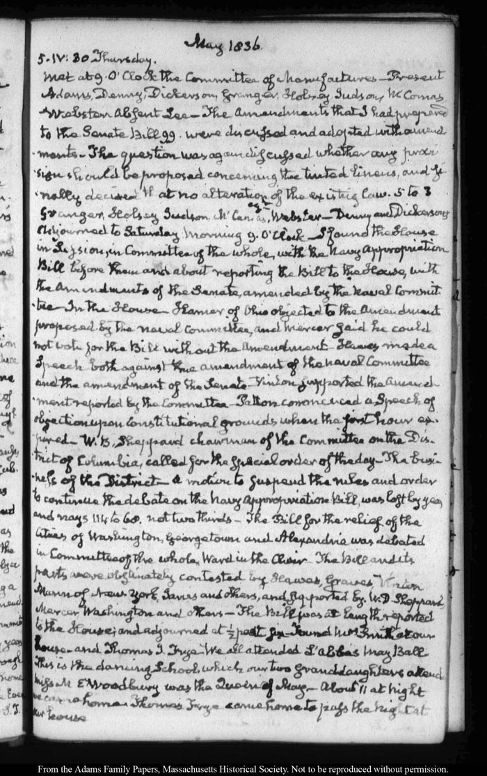 View full, authoritative transcriptions with page images of the diaries at John Quincy Adams Digital Diary part of the Primary Source Cooperative at the MHS.